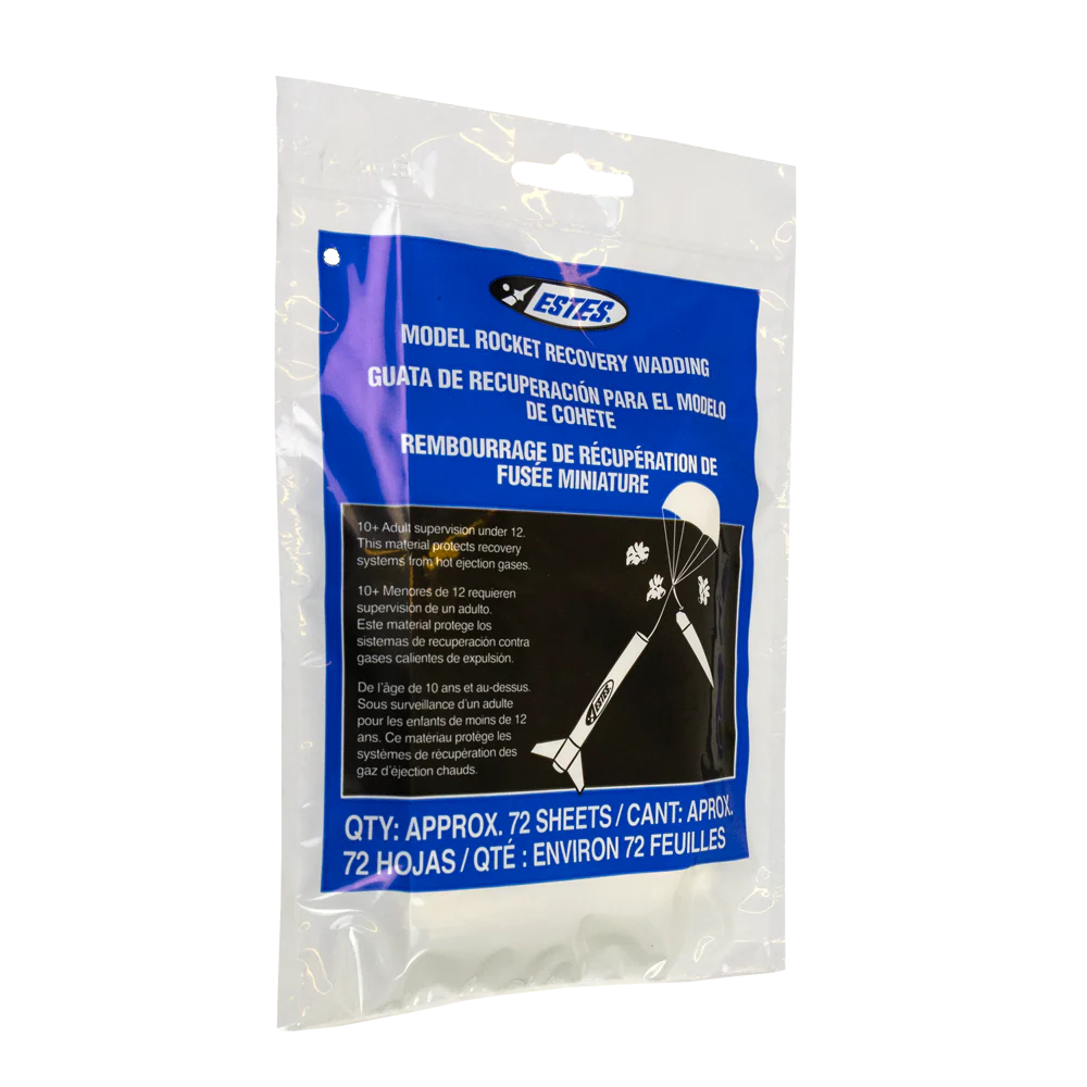 Protect your parachutes and ensure safe landings with Estes Recovery Wadding. Flame-resistant and easy to use, this essential accessory shields your recovery system from the motor’s ejection charge.