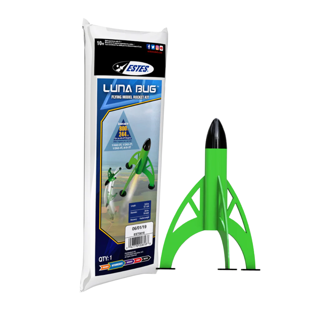 Luna Bug is a powerful and exciting addition to your rocket collection! With the ability to soar up to 800 feet on Estes Mini Engines, this tiny rocket packs a punch that will challenge both entry-level and intermediate-level rocket enthusiasts.