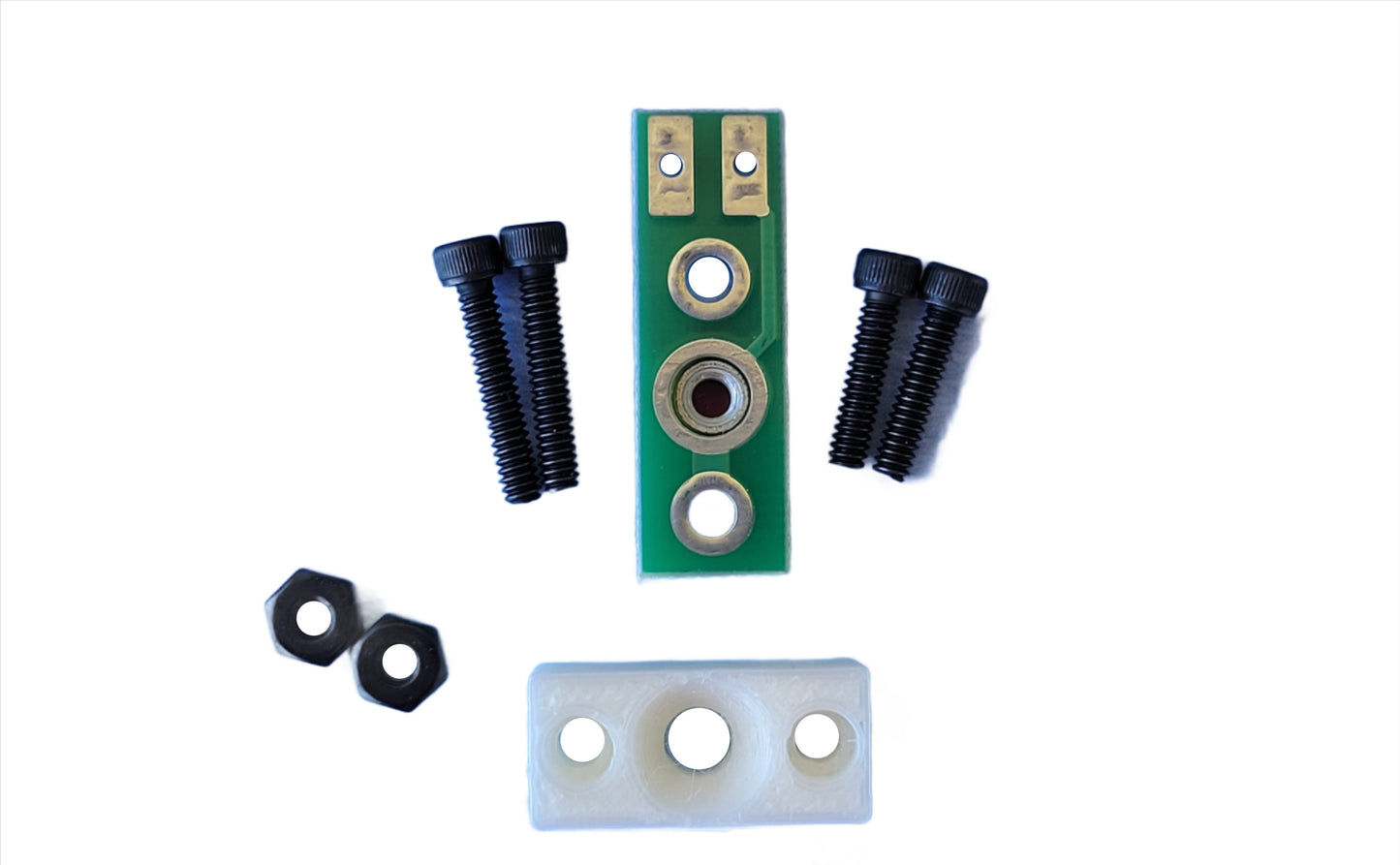 - All the necessary 4-40 mounting hardware in black oxide hardware for both 1/16" and 1/8" thick sled mounting scenarios (2 ea. 4-40 x 1/2" / 4/40 x 5/8" cap screws / 4-40 nuts)